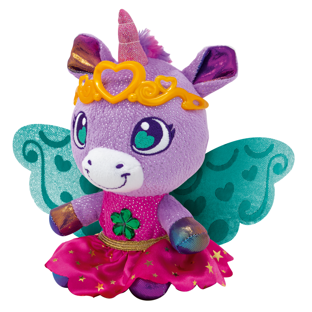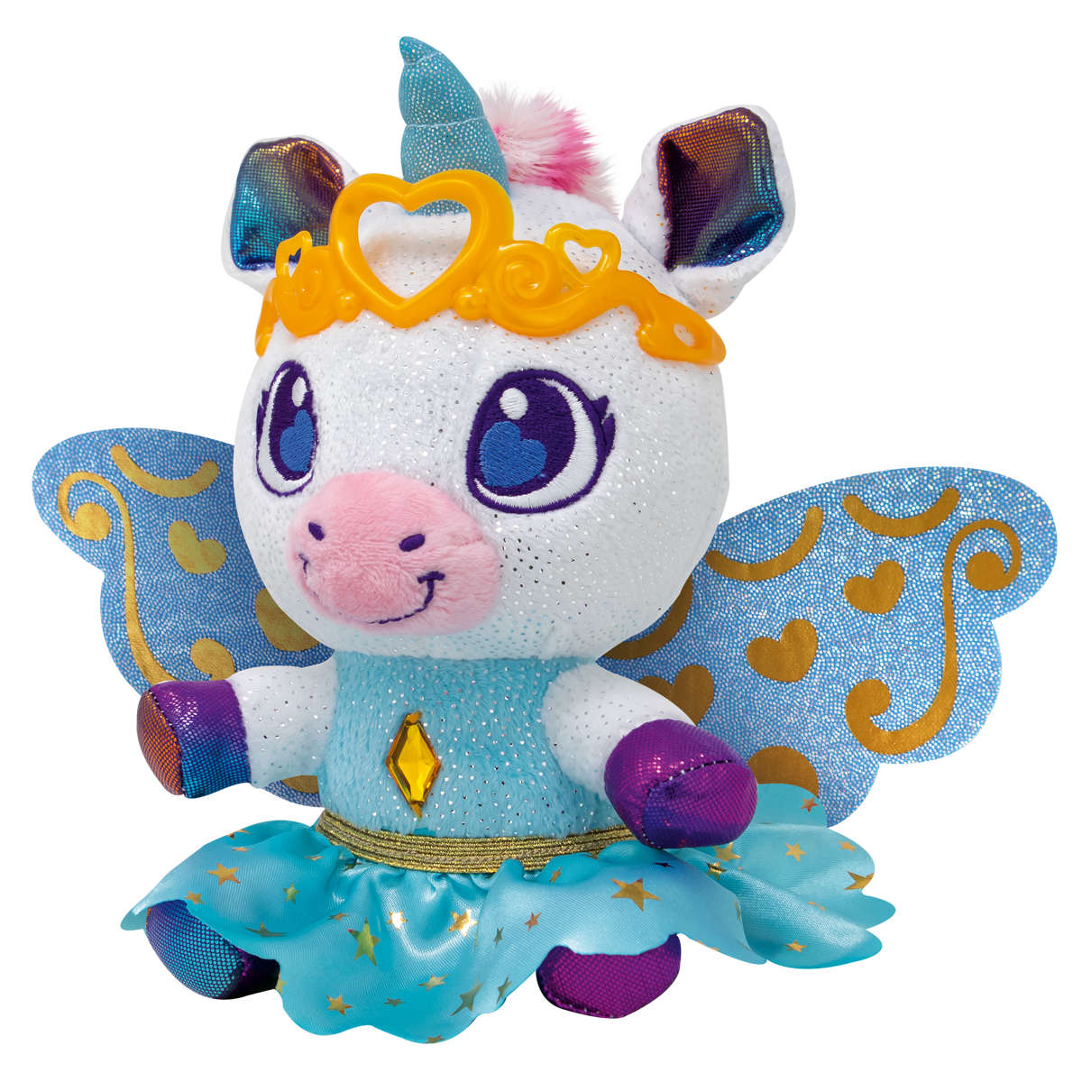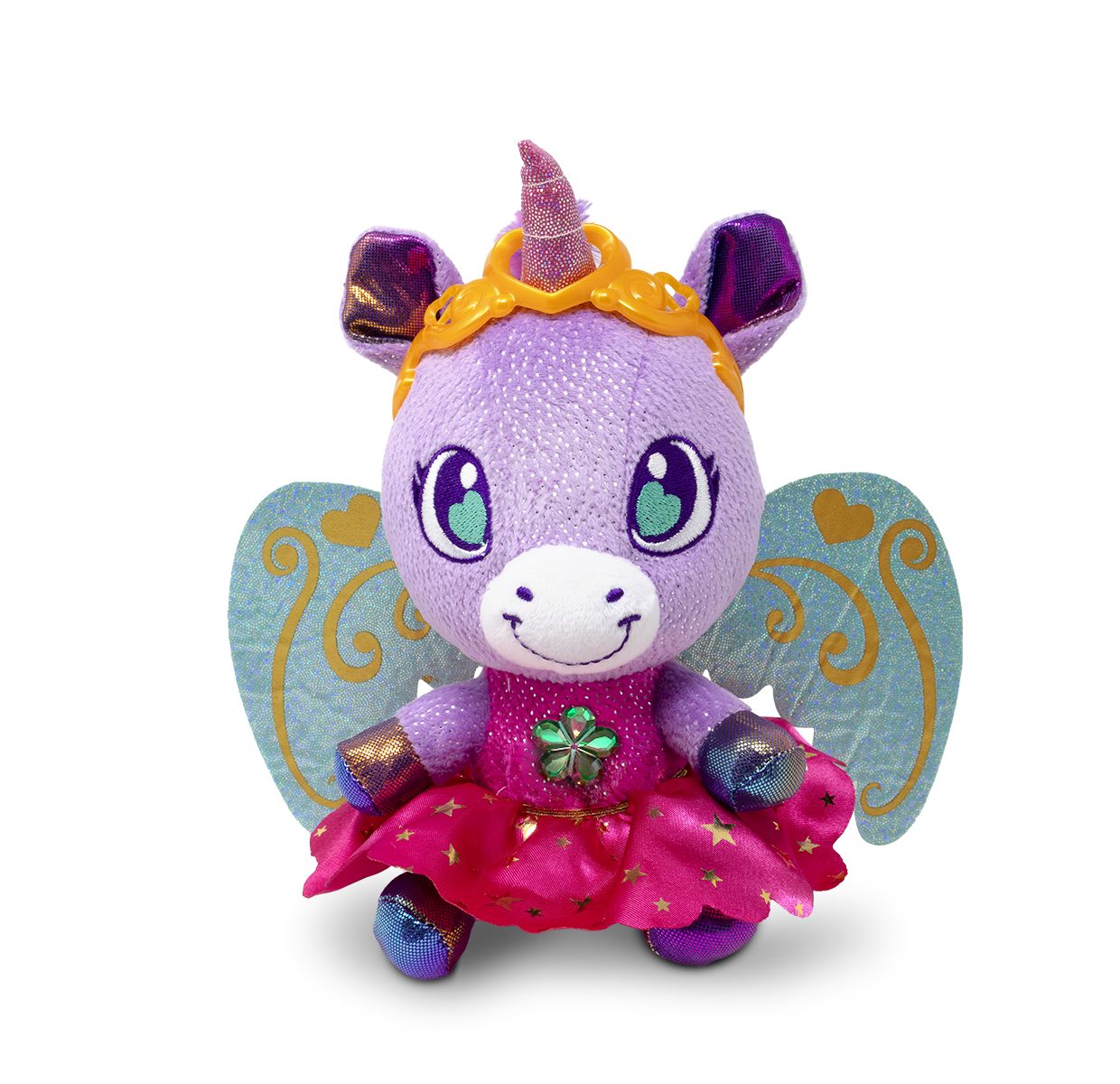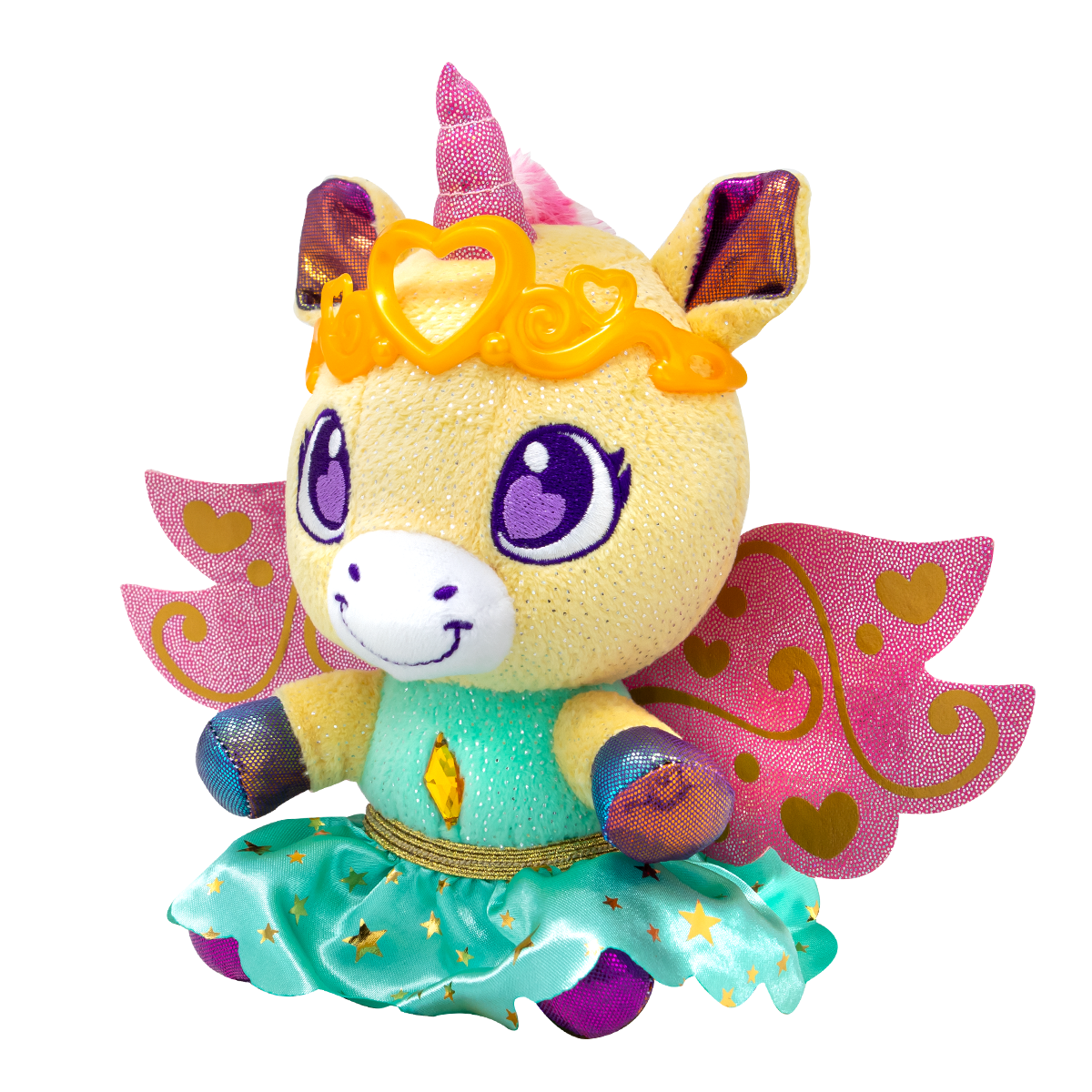 • 100% recycled stuffing. CONTENT: 1 Royal Unicorn 1 interchangeable wing 1 interchangeable skirt 1 golden crown 2 stickers
