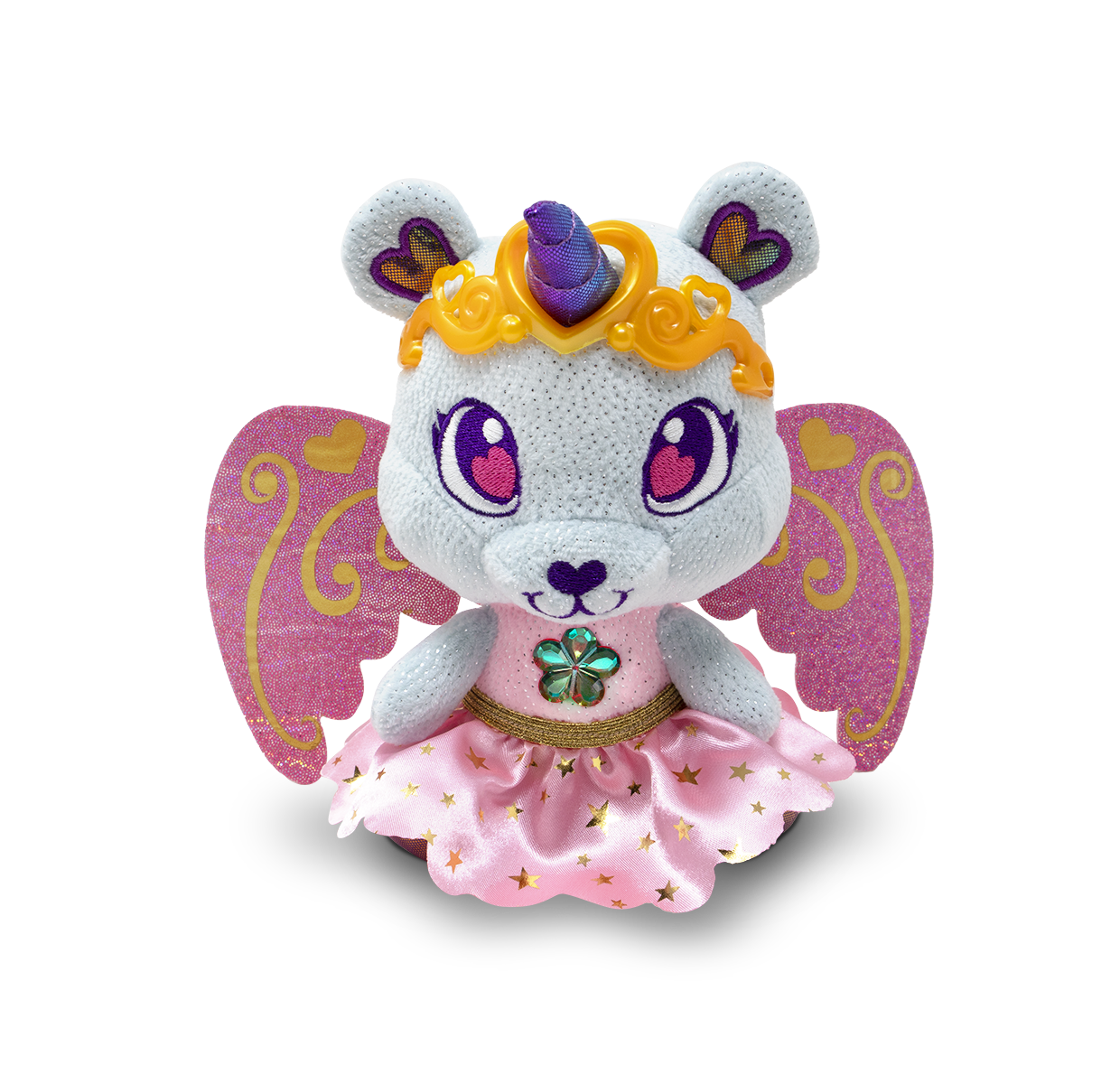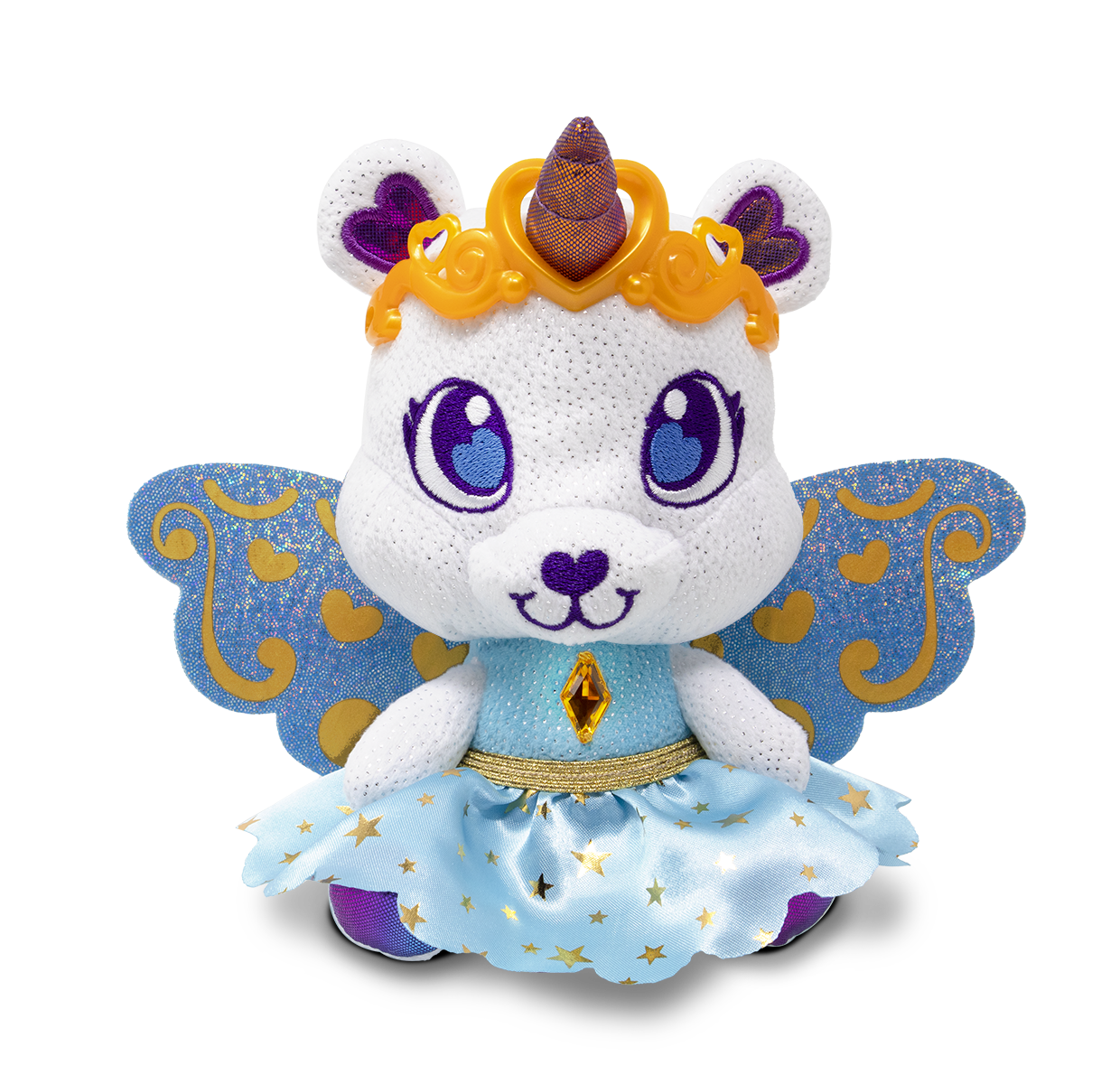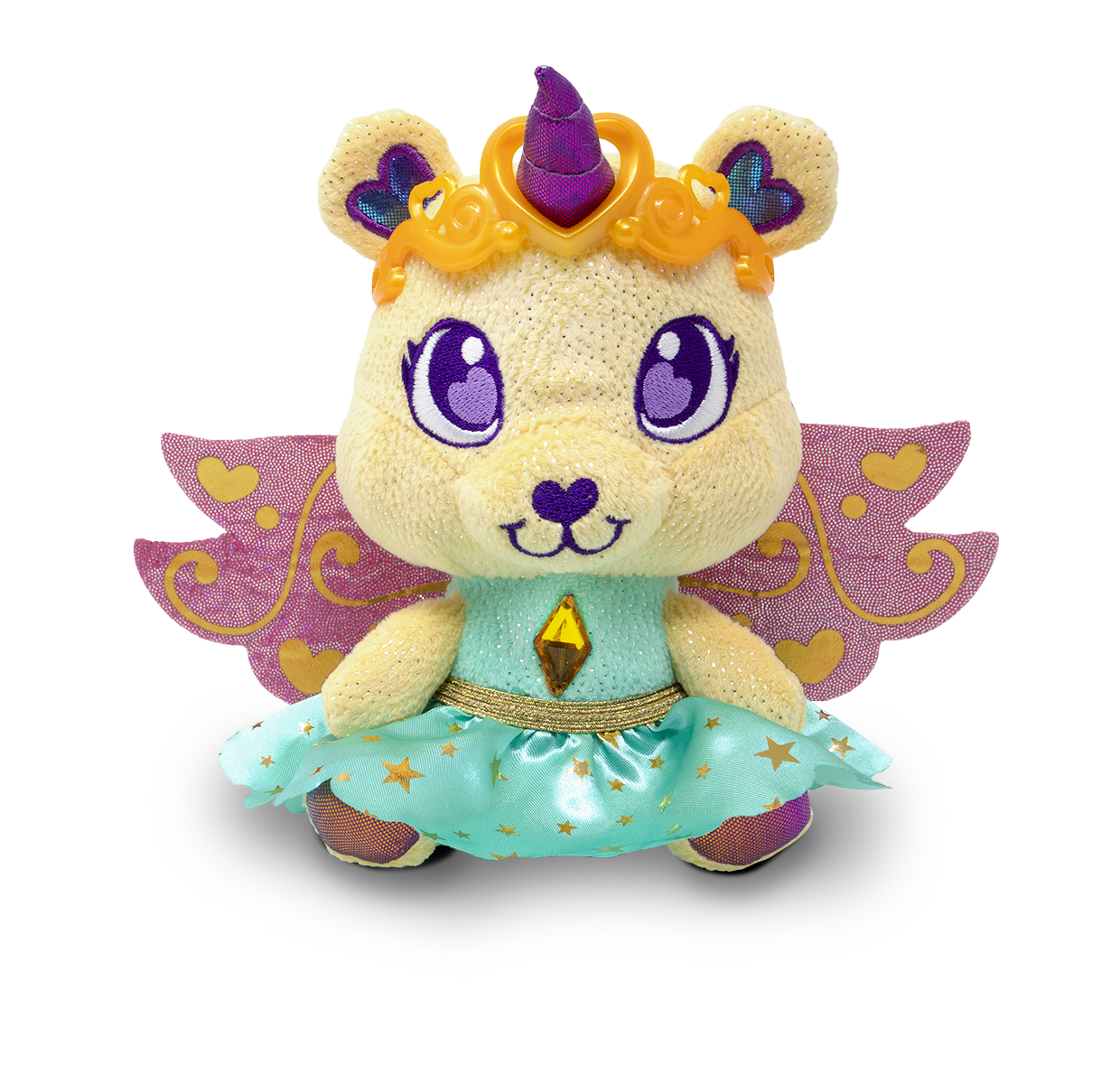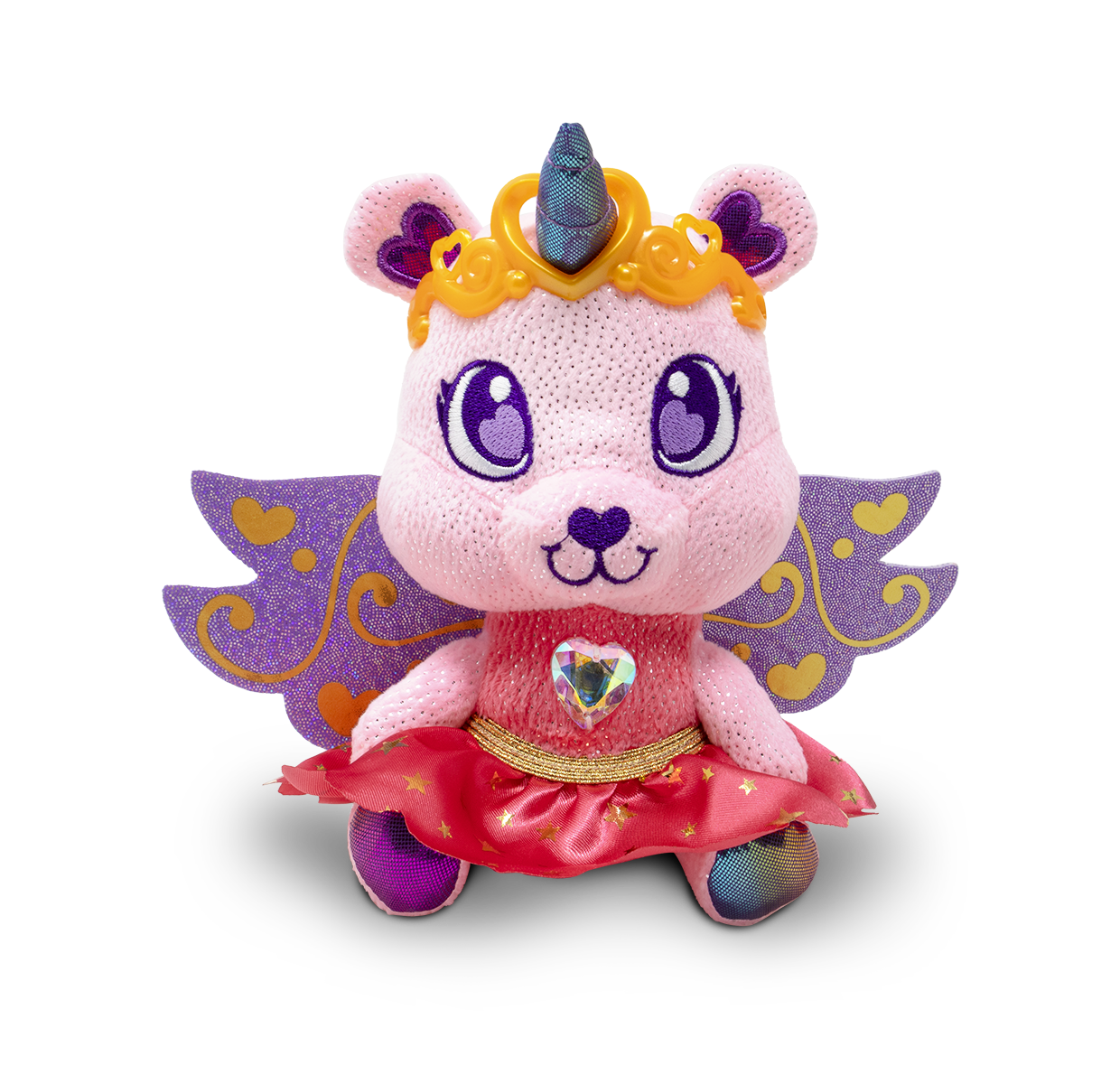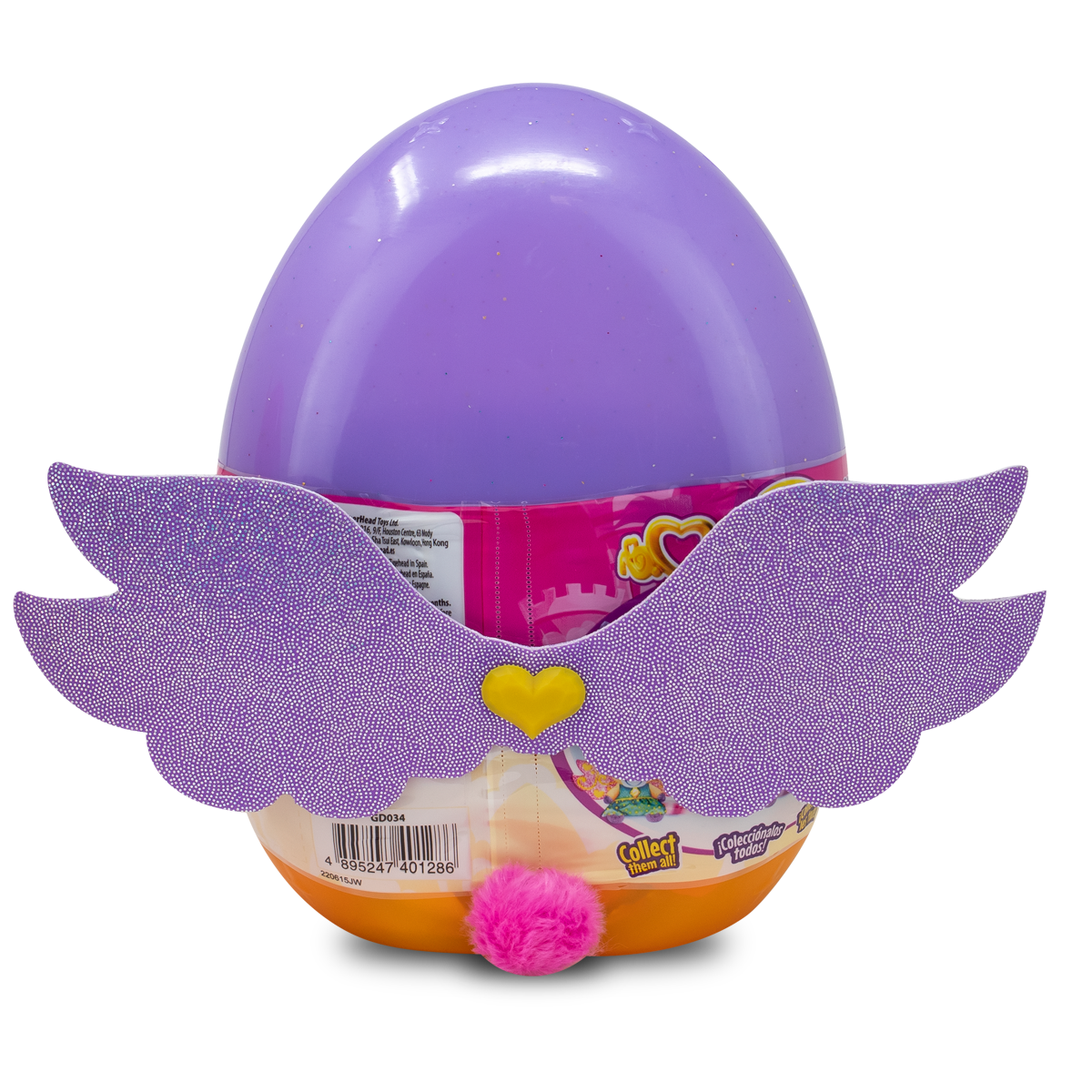 Meet the new Baby Gemmy Royal Wings series! Inside the royal pink egg, you will discover your cute fantasy bear! The removable/ interchangeable wings will open the door to a magic world with flying bears. These charming creatures keep precious “gifts” on their chest in form of gems (6 different ones), that they want to share with you: optimism, love, and good fortune; choose the one that matches you the best! Complete plush outfit with the golden crown and removable skirt. Let you imagination fly and start the adventure with your fantastic new friends! The egg can be transformed into a beautiful place with the cute decoration stickers!